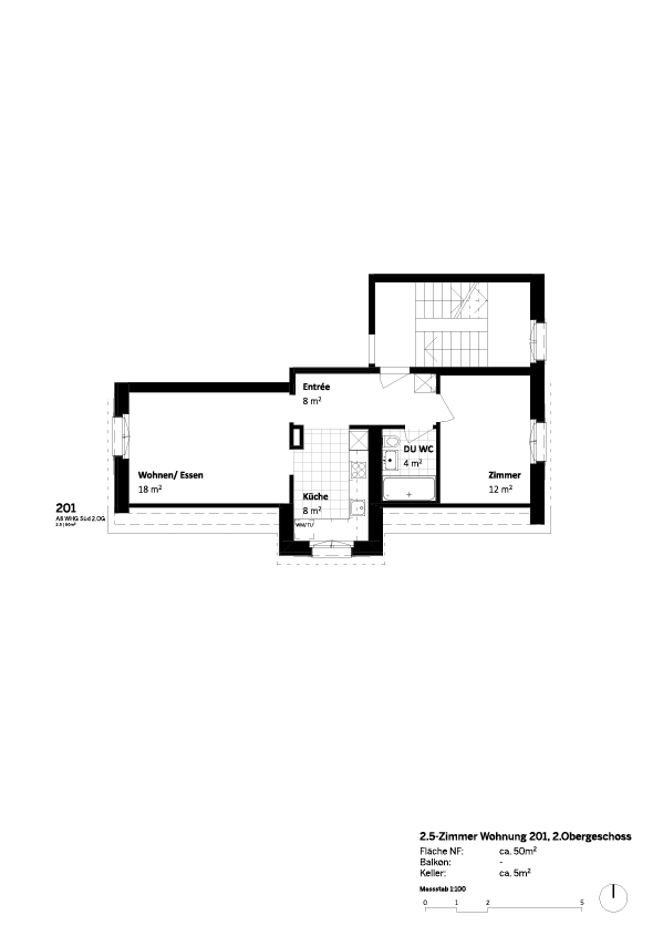 Die 2.5-Zimmerwohnung im 2. OG Süd vermittelt dank Dachschrägen in verschiedenen Räumen sowie der sehr schönen Aussicht Richtung Üetliberg das heimelige Gefühl einer Dachwohnung. Die Küche ist teilweise zum Korridor und Wohnzimmer hin offen. Das Tageslichtbad mit Dusche/WC ist stil- und stimmungsvoll, der kleine Einbauschrank im Korridor praktisch.